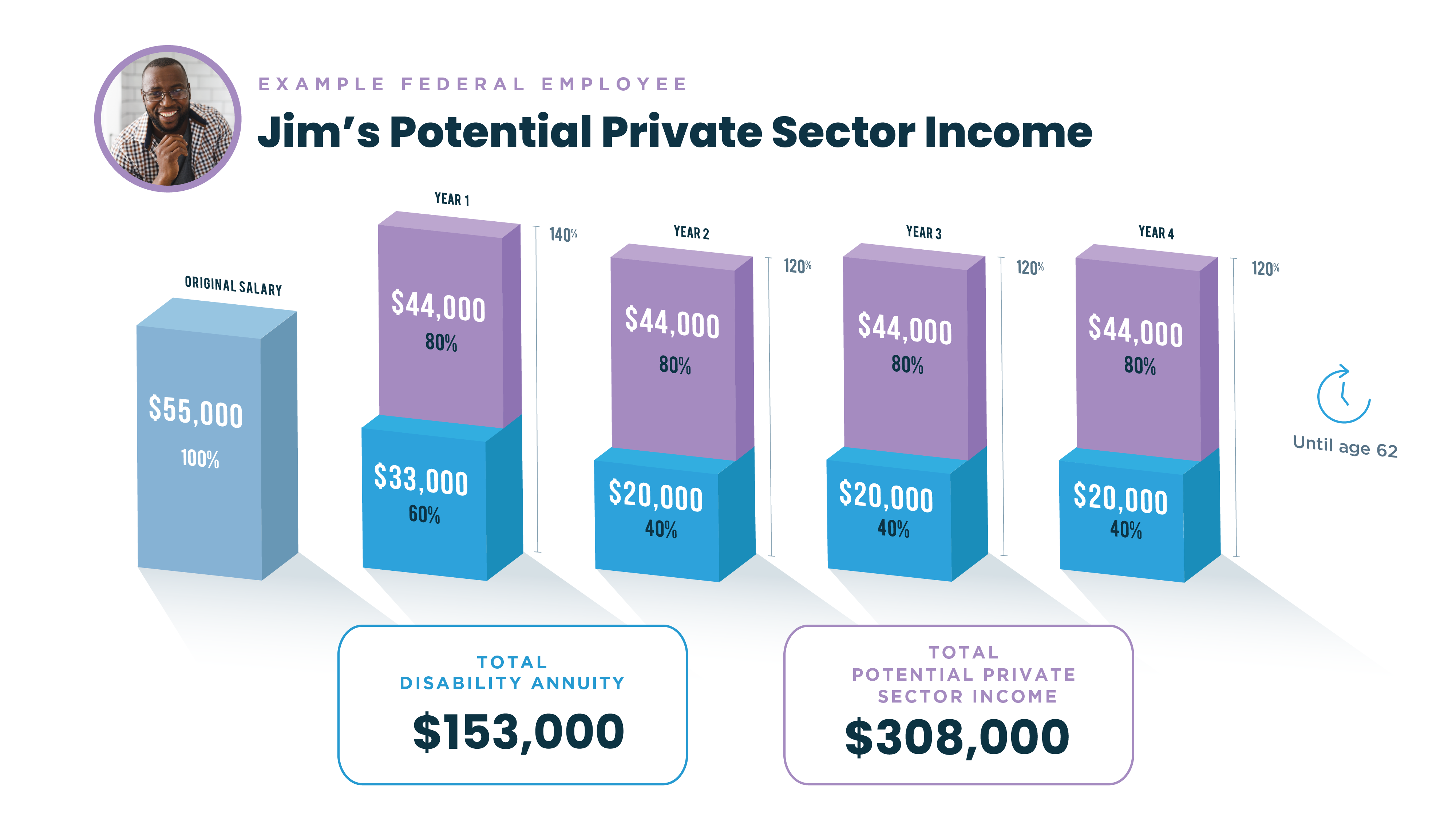 - The financial benefit is substantial: In year one, you receive 60% of your high-three salary; after that, 40% until age 62—plus you can earn private sector income on top of that.