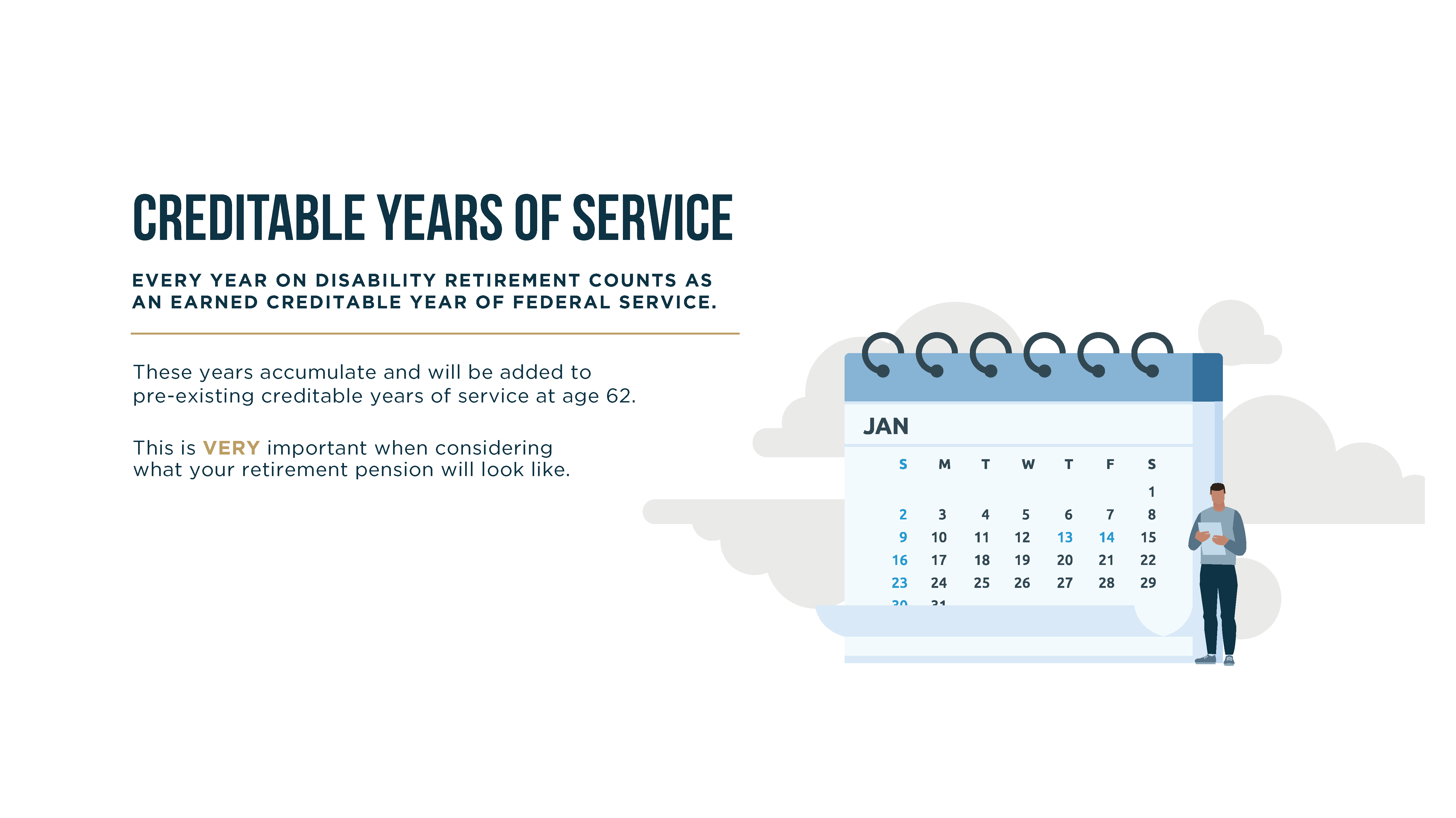 Ashley: And in addition to that, while on Disability Retirement, those federal employees will continue to accrue years of service until they turn 62. Can you touch on what that looks like?