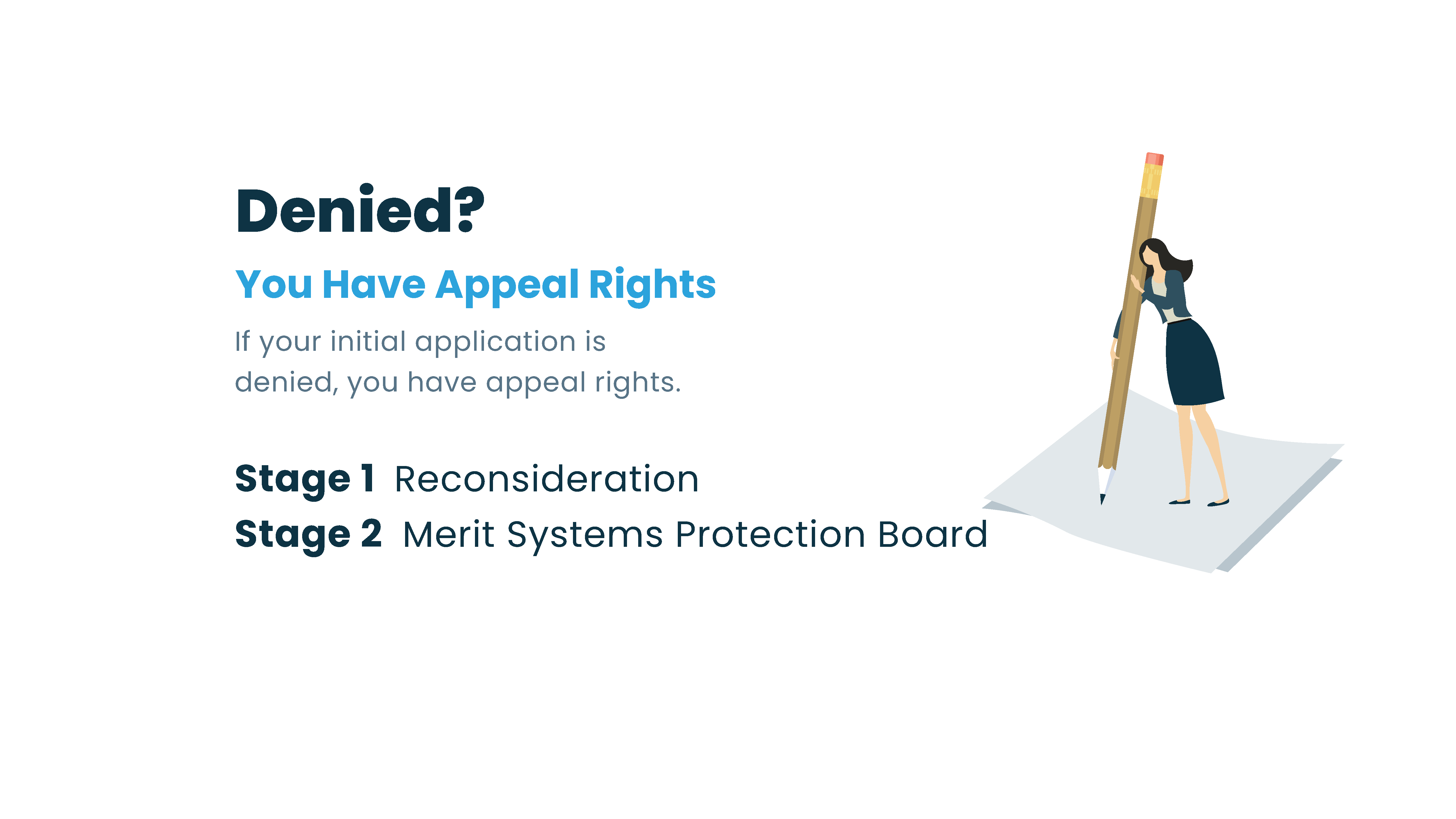 You do have appeal rights at this stage if you’re denied at that reconsideration level. We’re able to request to appeal to the MSPB within 35 days. This does mean that your claim will be assigned to a judge, and an appeal will require a telephonic attendance with the judge and the agency representative which was assigned by the OPM.